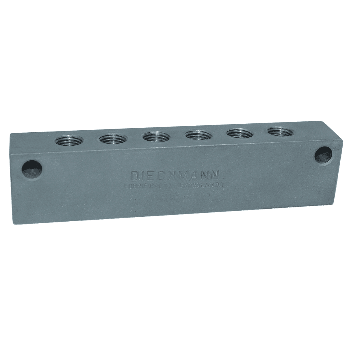 Barra de ligação utilizada em sistemas de lubrificação linha simples para interligar dosadores volumétricos ou dosadores da linha DKM, permitindo a distribuição do lubrificante a múltiplas saídas a partir de uma única entrada. Ideal para aplicações industriais que exigem organização, padronização e fácil expansão do sistema.