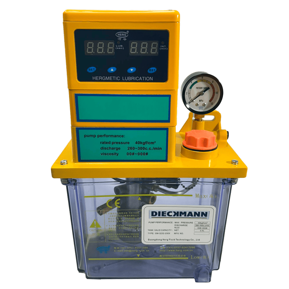 Modelo GM-3232-230X com reservatório de 2,0 litros e display digital incorporado para programação e monitoramento dos ciclos de lubrificação. Indicada para sistemas automáticos de lubrificação linha simples com despressurização automática integrada. Equipamento compacto, confiável e de fácil instalação, ideal para aplicações industriais que exigem precisão e controle nos ciclos de lubrificação.