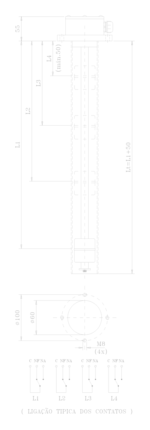 A chave controladora de nível NSA C NA/NF 250 NA/NF 150 é um dispositivo projetado para monitorar e controlar o nível de líquidos em reservatórios, garantindo acionamento preciso em sistemas de lubrificação. Equipada com contato tipo reed-switch e montagem vertical, oferece alta confiabilidade e facilidade na instalação, mesmo em aplicações que exigem múltiplos pontos de controle.