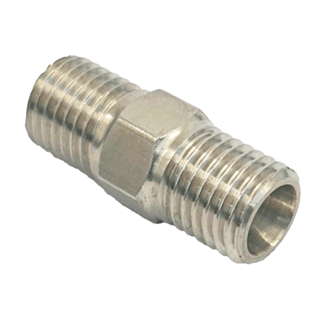 O Corpo da União Dupla de Inox 304 UDI é uma conexão reta utilizada para unir dois tubos de mesmo diâmetro em sistemas de lubrificação automática, hidráulicos e de instrumentação, garantindo uma vedação segura e montagem precisa.