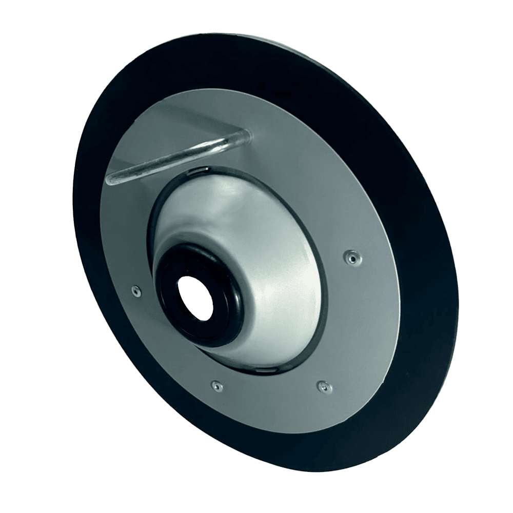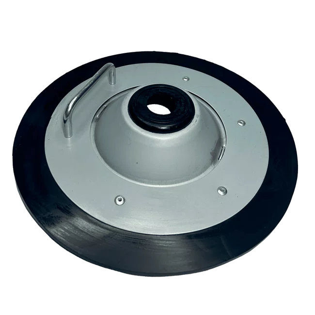 Disco seguidor compactador utilizado em sistemas de lubrificação para garantir a alimentação correta e contínua de graxa a partir de baldes de 20 kg. Sua função é acompanhar o consumo da graxa, evitando a formação de bolsões de ar e assegurando a sucção uniforme do lubrificante pela bomba, contribuindo para o funcionamento eficiente do sistema.