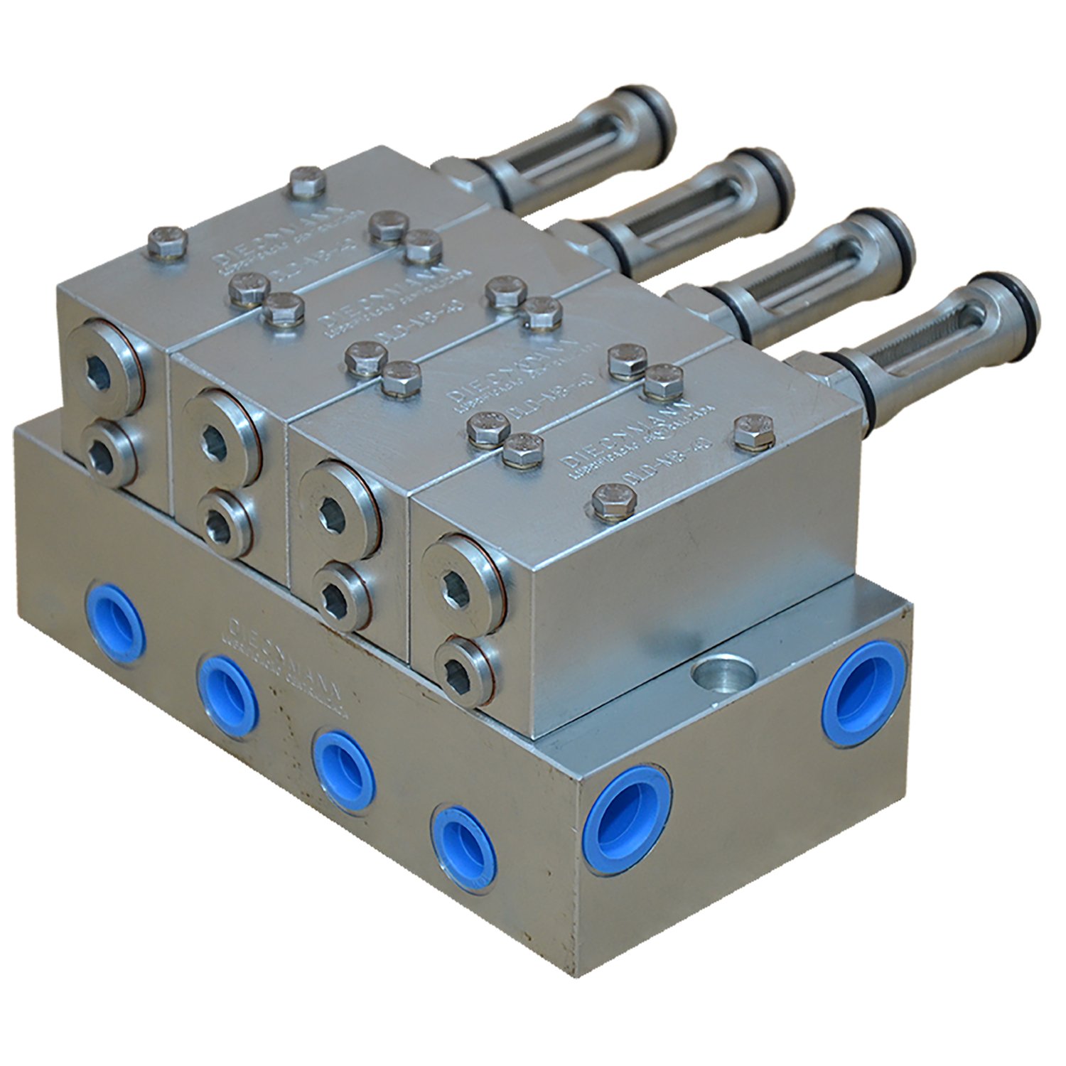 Destinado à lubrificação de equipamentos com diversos pontos e que requerem volumes maiores e distantes da unidade de bombeamento. Equipado com castelo de regulagem de vazão de lubrificante, assim como para visualização de funcionamento do distribuidor.