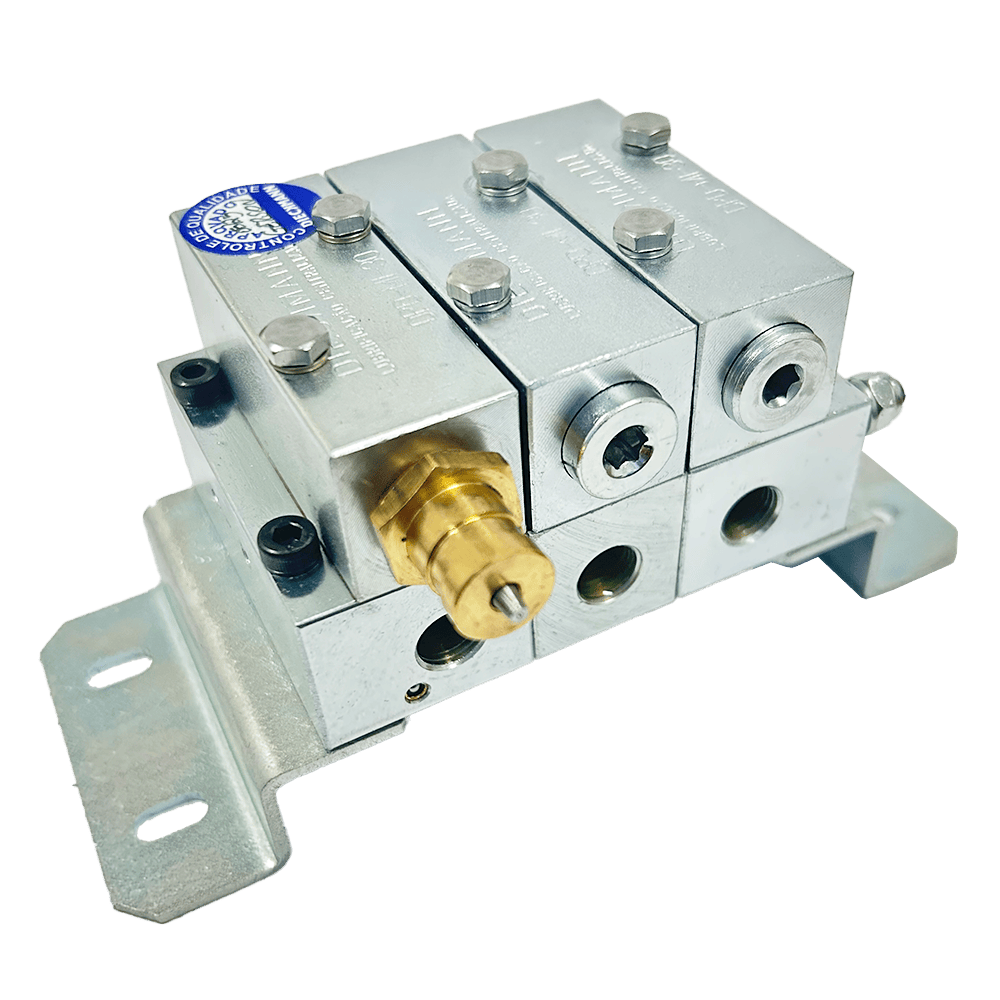 O Distribuidor Progressivo Modular DPD-MI-3-IC é um elemento de precisão projetado para realizar a distribuição e dosagem controlada de lubrificante em múltiplos pontos, atendendo sistemas de lubrificação centralizada com confiabilidade e eficiência.