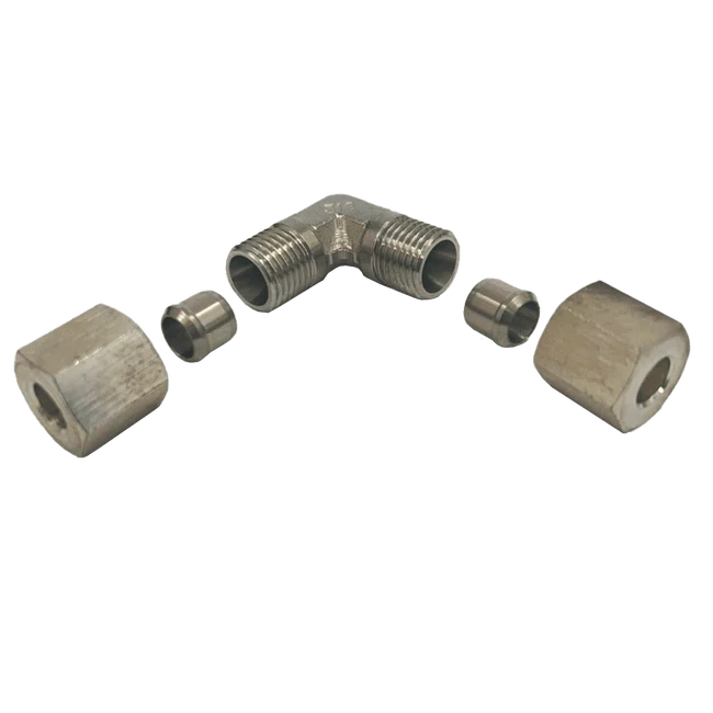 O Joelho Igual de Inox 316 JII é uma conexão a 90° utilizada para unir tubos de mesmo diâmetro, permitindo mudanças de direção em linhas de lubrificação, hidráulicas e de instrumentação industrial. Fabricado conforme as normas DIN 2353 e ISO 8434-1, também conhecidas como padrão Ermeto, garante vedação metálica confiável e montagem precisa.