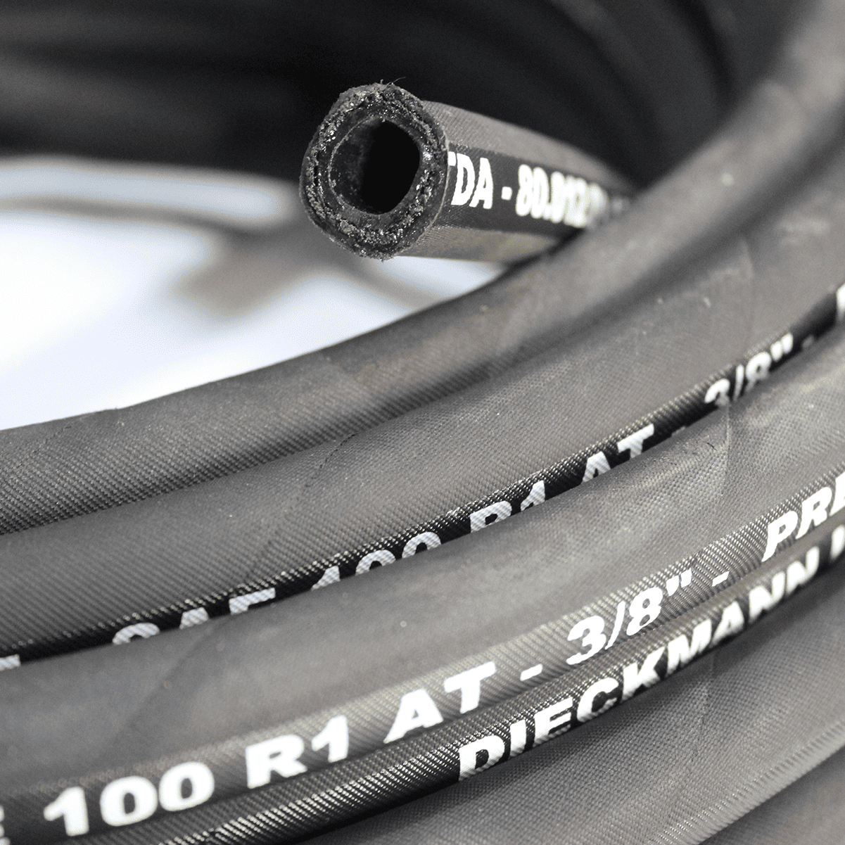Mangueira hidráulica fabricada conforme padrão SAE 100 R1 AT / EN 853 1SN, projetada para aplicações de baixa a média pressão em sistemas hidráulicos industriais e móveis. Ideal para uso em máquinas-ferramentas, equipamentos agrícolas e circuitos hidráulicos que operam com fluidos à base de petróleo ou água.