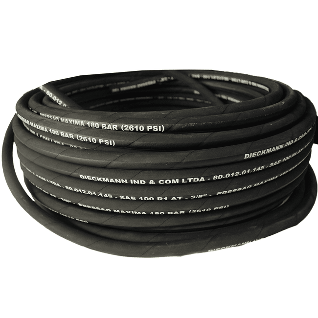 Com estrutura robusta composta por tubo interno de borracha sintética resistente a óleo, reforço com trança única de aço de alta resistência e cobertura externa com proteção contra abrasão e intempéries, garante durabilidade, desempenho e segurança em ambientes exigentes.