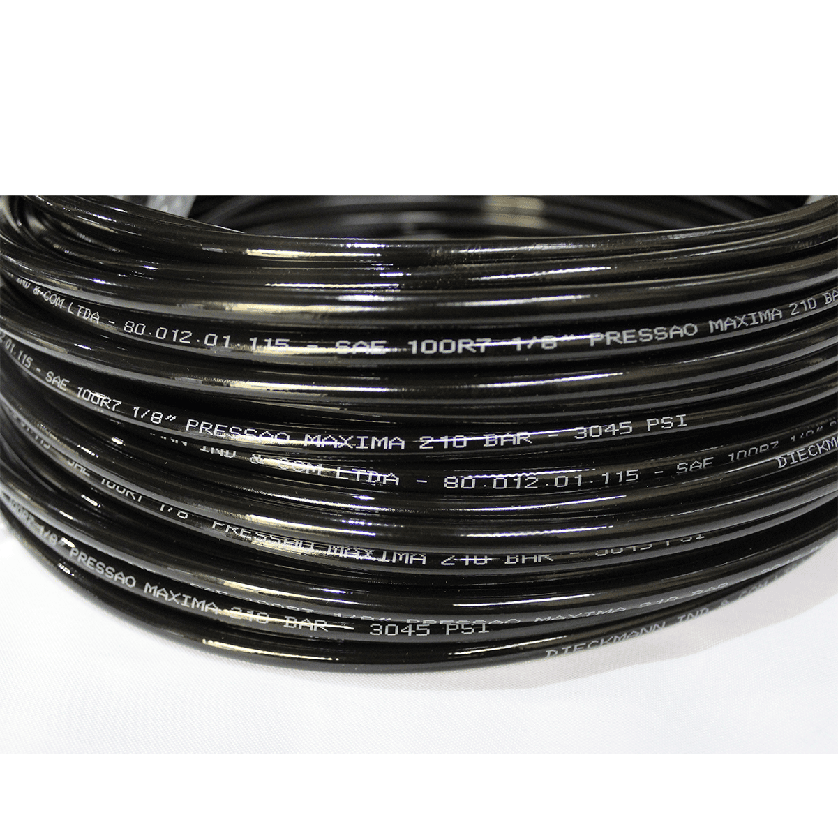 Composta por tubo interno em Nylon 11, reforço intermediário com malha de poliéster de alta resistência e cobertura externa em poliuretano, a mangueira oferece flexibilidade, resistência à abrasão e compatibilidade com lubrificantes.