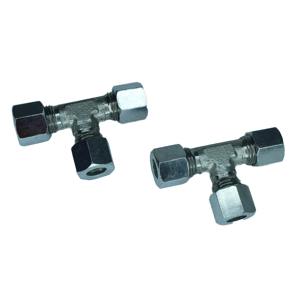 Tee igual TIA é uma conexão de 3 vias a 90° utilizada para realizar derivações em linhas de tubulação com tubos de mesmo diâmetro, amplamente aplicada em sistemas automáticos de lubrificação e circuitos hidráulicos de média e alta pressão.