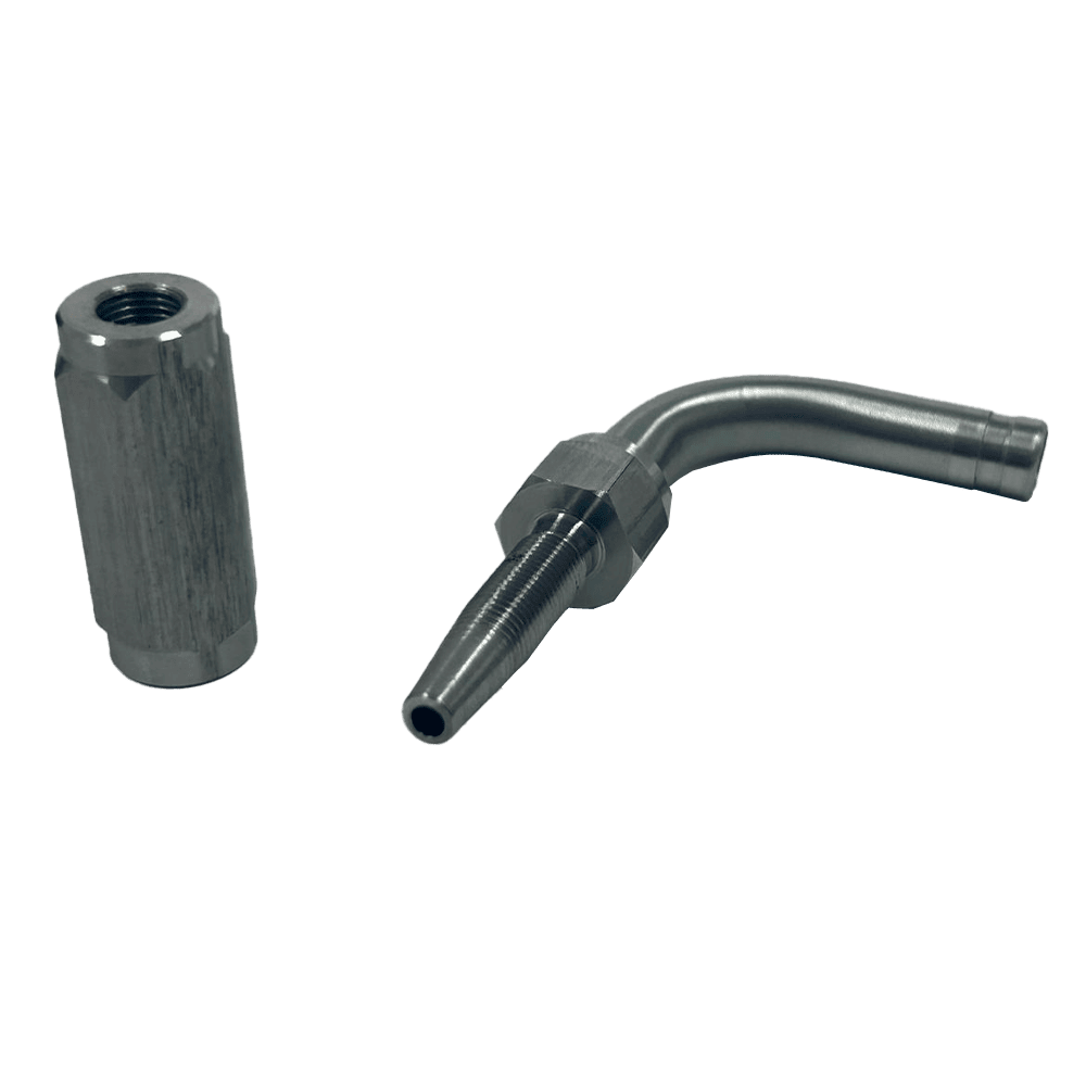 O Terminal Reusável 90 Graus em Aço Inox 304 é utilizado em mangueiras termoplásticas para sistemas de lubrificação, permitindo conexões seguras e montagem em ângulo para facilitar o roteamento da linha em espaços restritos.
