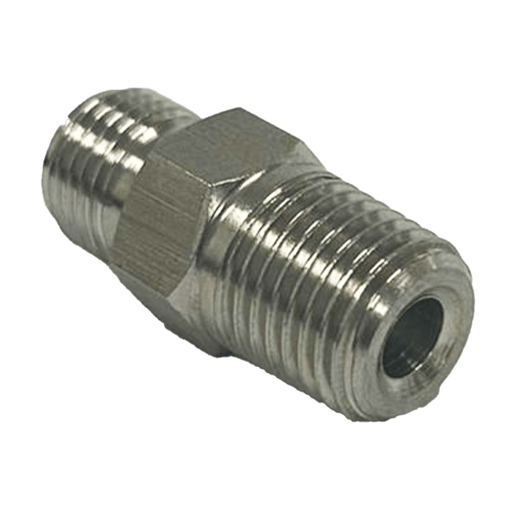 A União Macho UMI é uma conexão reta utilizada para unir tubos de sistemas hidráulicos, de lubrificação ou instrumentação industrial a componentes com rosca fêmea.