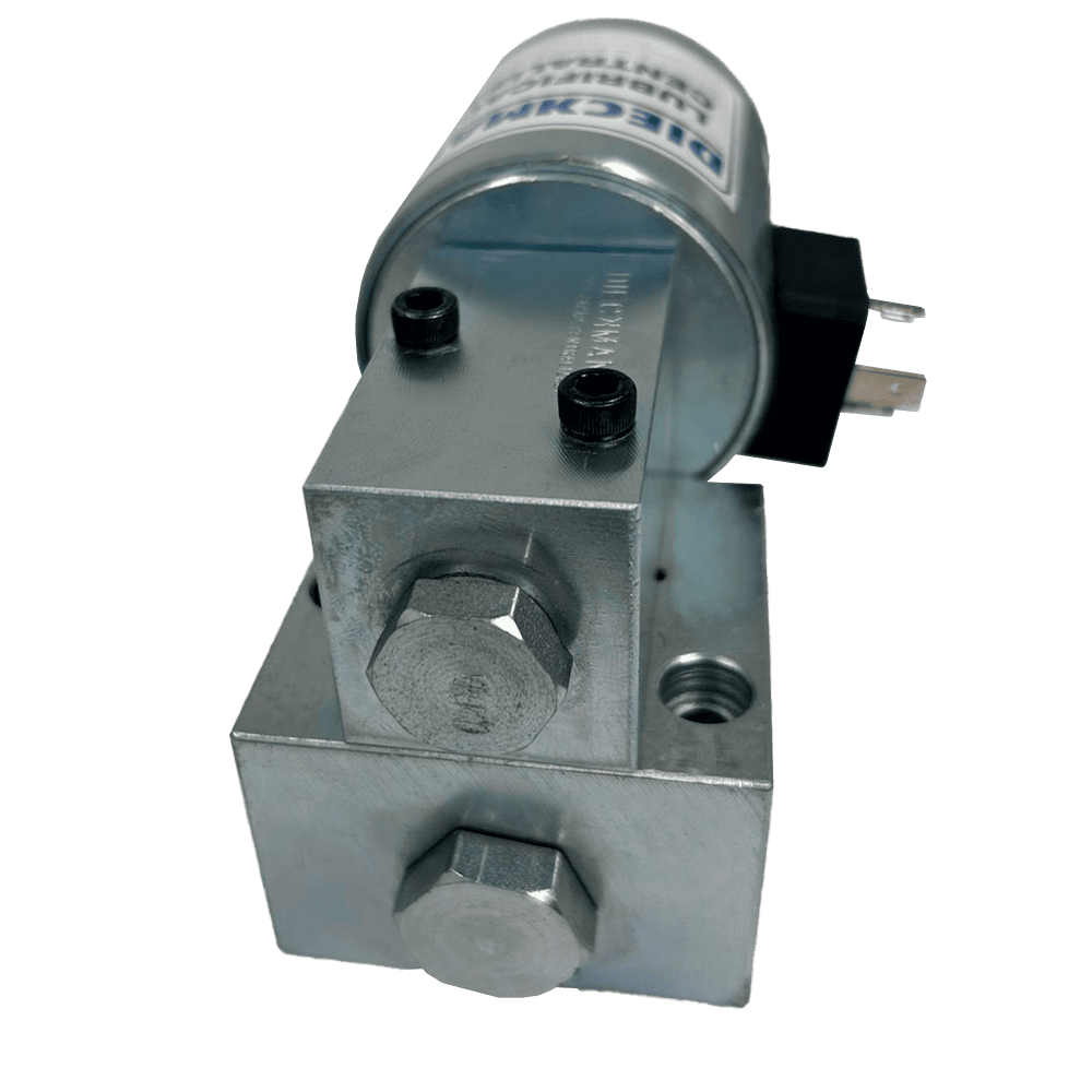 Construída com passagem plena e retorno por mola, opera em duas posições (normalmente fechada), sendo acionada por sinal elétrico. Quando energizada, libera o fluxo do lubrificante para a linha desejada.